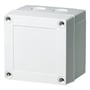 MNX PCM monteringskasse i polycarbonat, gråt dæksel, IP66/67. Størrelse: 100x100x75 mm. Leveres med plomberbare skruer og udslagsblanketter.