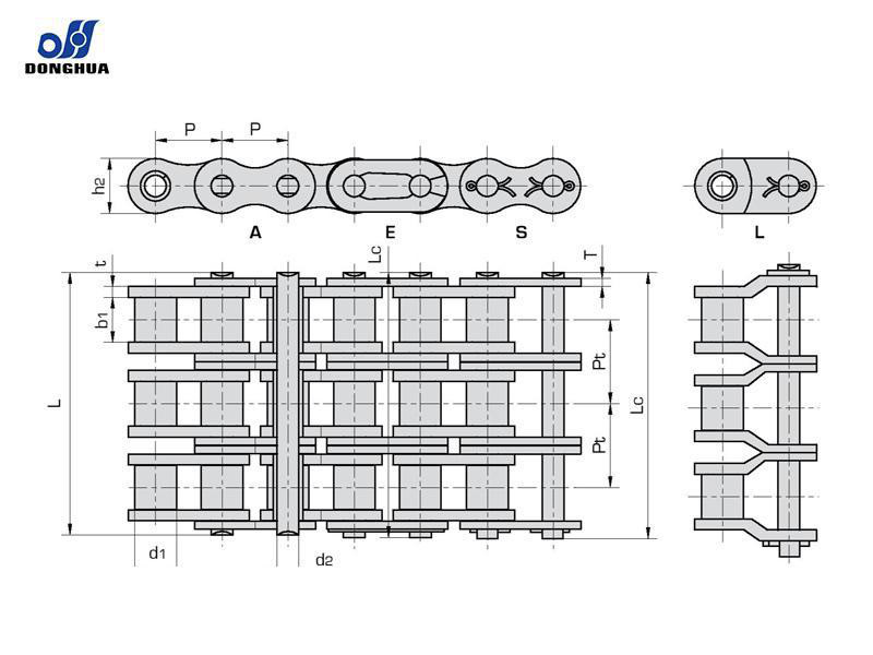 De tekniske data henvises til den tekniske tegning af kæden for korrekte dimensioner af linket.