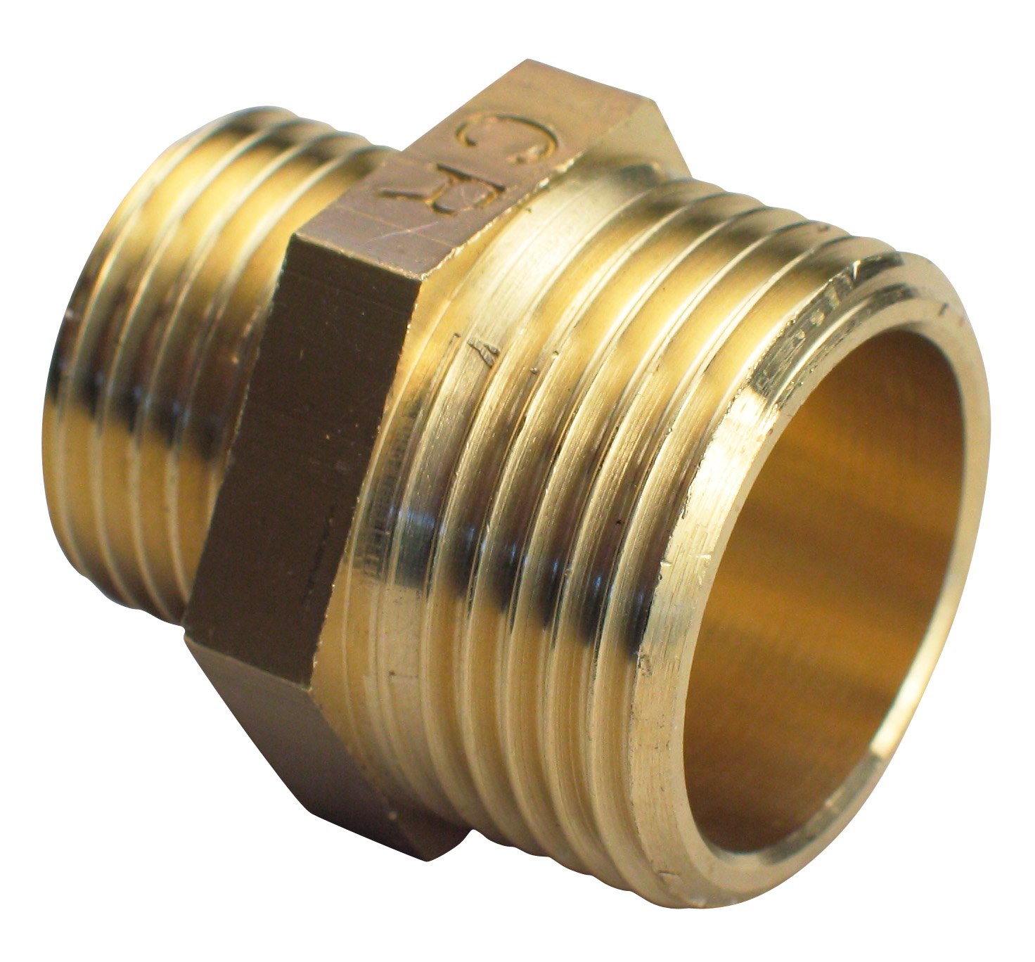 Ezze brystnippel i afzinket messing med dimensionerne 1.1/2" x 3/4".