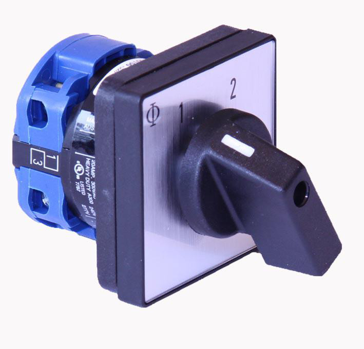 Kraus & Naimer omskifter, 1 polet, 20A, 1-2, 4 huls frontmontage med 48x48 front. Model CA10 A220-600 E. Fås på forespørgsel fra 10A-2400A samt i 1 huls frontmontage.