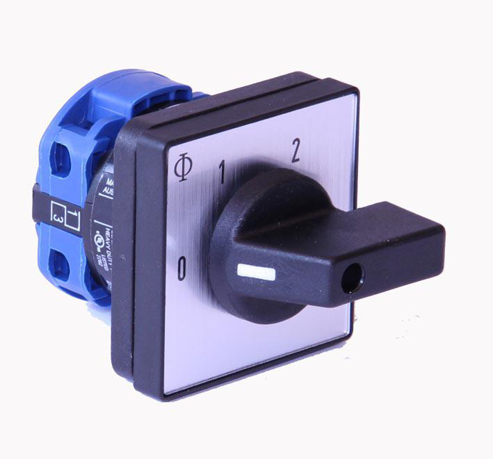 Kraus & Naimer trinomskifter, 1 polet, 20A, 0-1-2, 4 huls frontmontage med 48x48 front. Model CA10 A240-600.E.