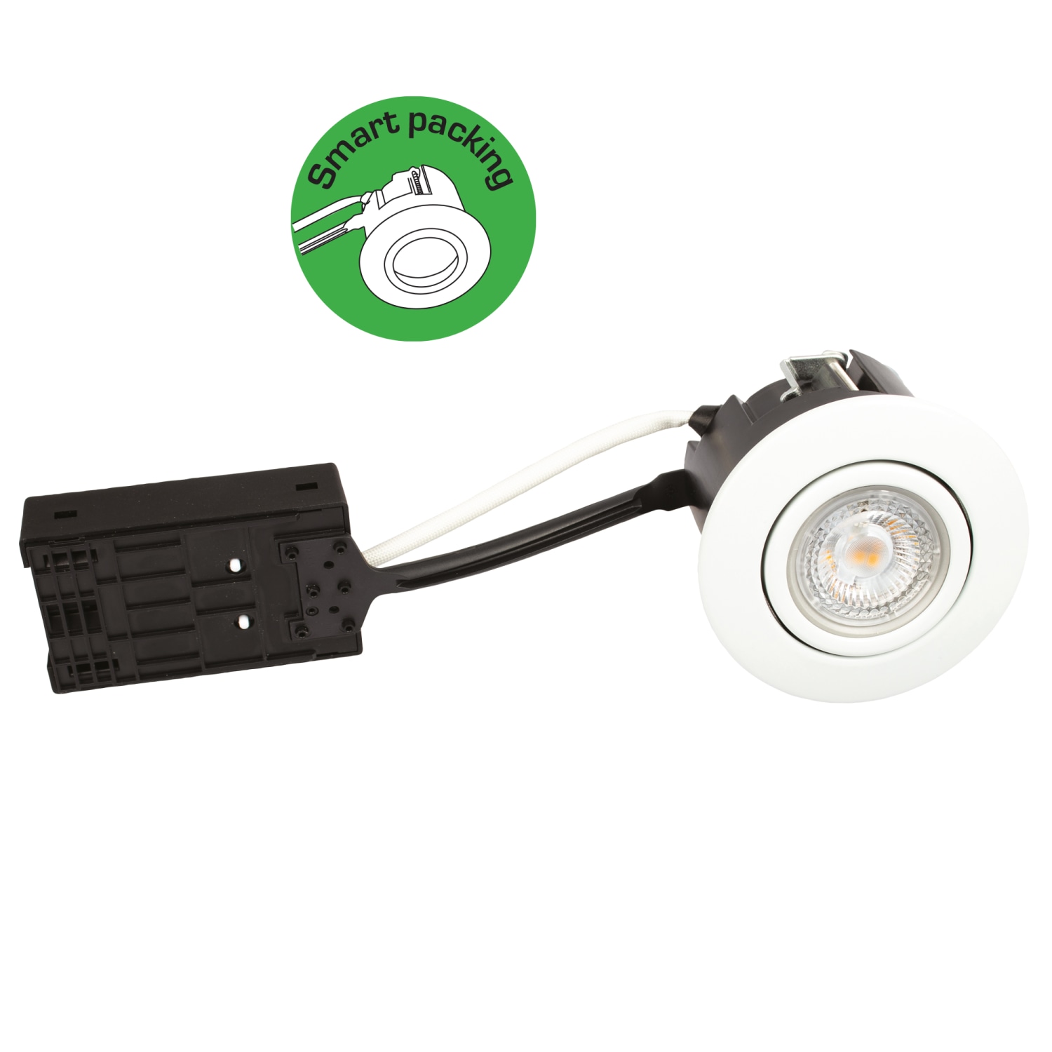 Luna kipbar downlight med bagmonteret lyskilde. Godkendt til direkte indbygning i isolering og brændbart materiale. Ideel til boligen, boligforeninger og hoteller.