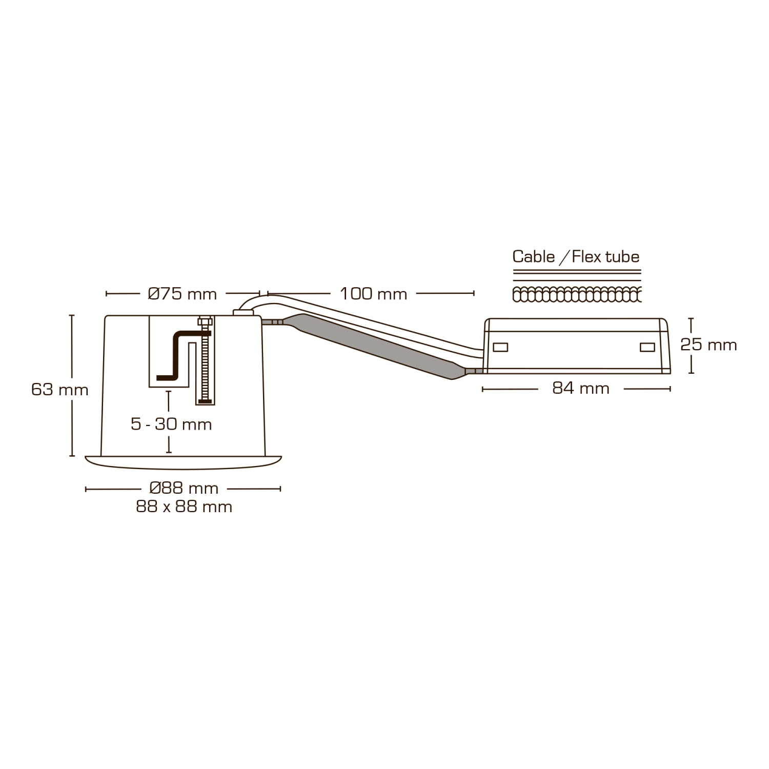 - Mulighed for montering med kabel eller 16 mm flexrør