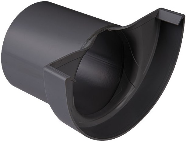 Grå endebund til tagrender med en tud på 75mm. Passer til 10" tagrender.
