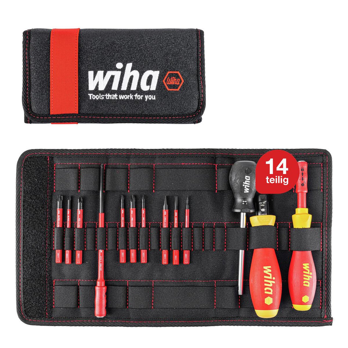 Alle dele er placeret praktisk og overskueligt i en slidstærk taske af høj kvalitet. Hvert værktøj er separat testet ved 10.000 V AC og derfor godkendt til 1.000 V AC, iht. IEC 60900.