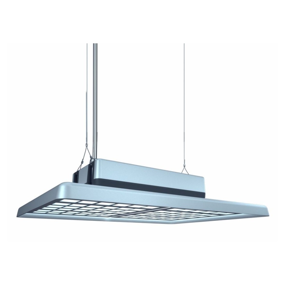 Effektiv 100W highbay/loftslampe med UGR19, RA85 og IP65. Ideel til højloftede rum. Fås i 3000K og 4000K. Dimensioner: 362 x 257 x 120 mm.
