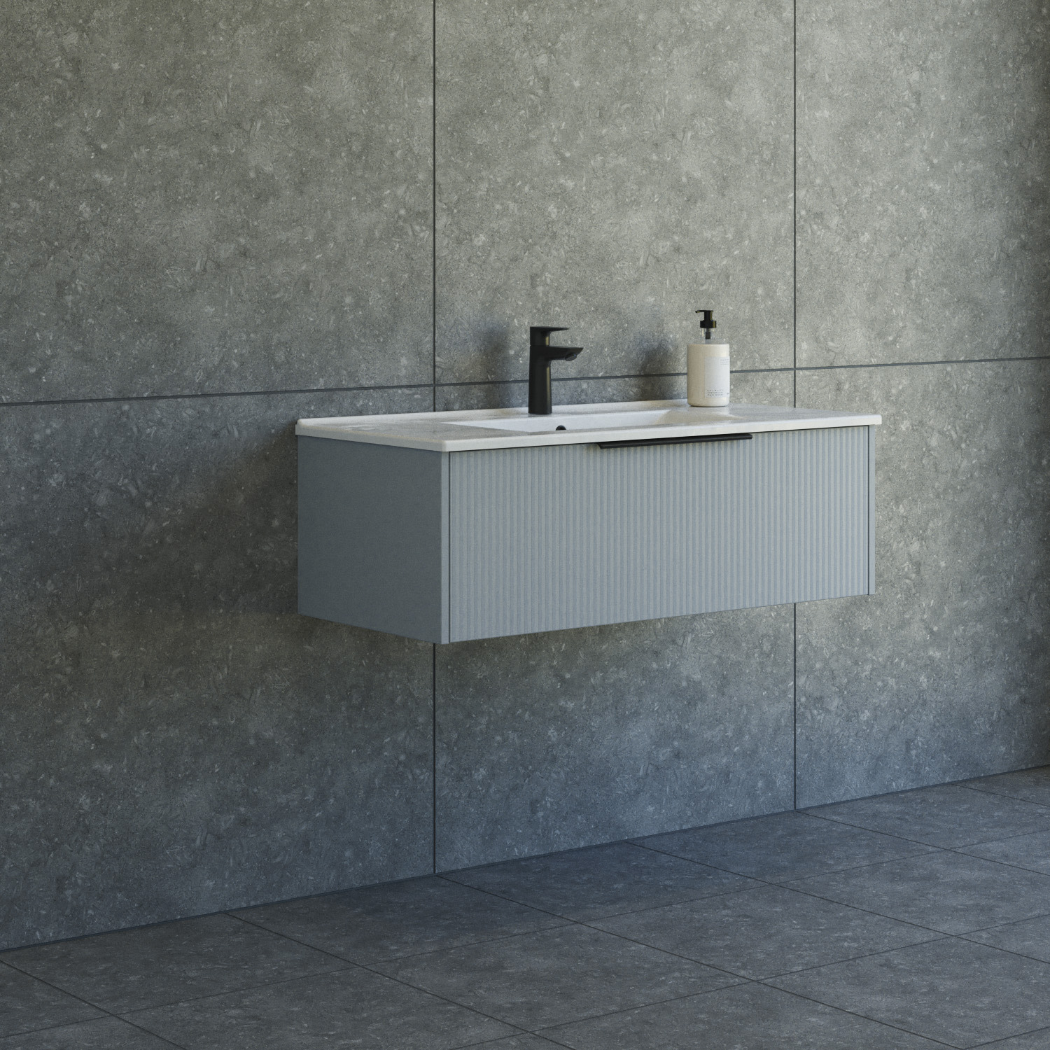 Skab et iøjnefaldende fokuspunkt på dit badeværelse med denne 101 cm brede Dansani Mido+ Classic møbelpakke. Den stribede front tilføjer et dekorativt touch, mens skuffen giver praktisk opbevaring til daglige fornødenheder.