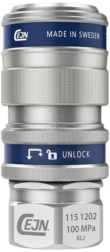 Cejn 115 lynkobling til højtrykshydraulik. Nem at håndtere, sikker og pålidelig. Non-drip design beskytter miljøet. Med sikkerhedslås og støvhætter for øget levetid.