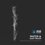 Lampen er konstrueret med et robust antracitfarvet aluminiumskabinet, hvilket sikrer holdbarhed og modstandsdygtighed over for elementerne. Den er IP65-klassificeret, hvilket betyder, at den er støvtæt og beskyttet mod vandstråler fra alle retninger, og derfor ideel til udendørs brug.