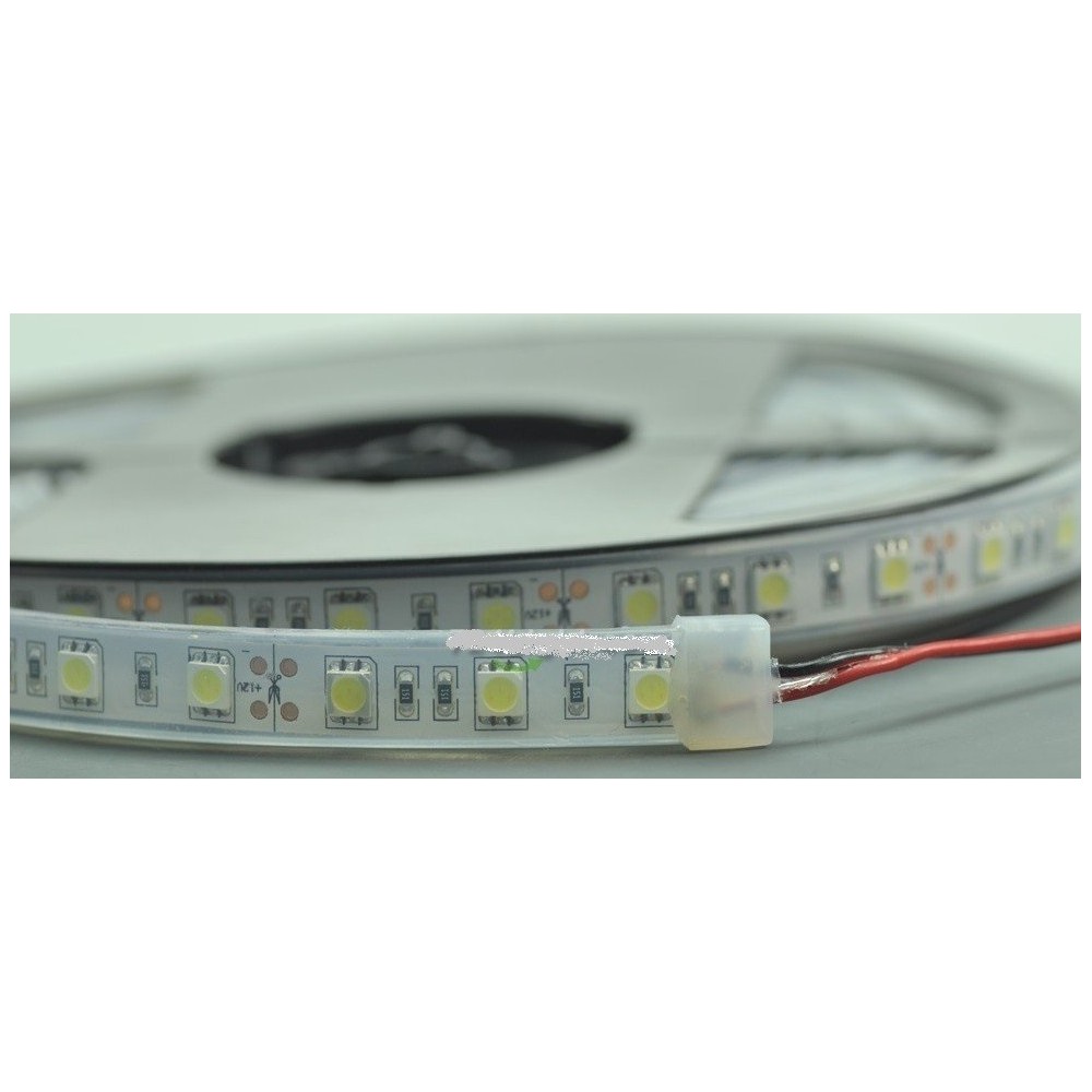 Vandtæt LED strip på 5 meter med 10W/meter, IP68-klassificering, 60 LED/meter og 12V spænding. Ideel til udendørs og fugtige omgivelser.