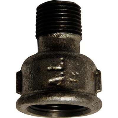 Galvaniseret spidsmuffe med gevind på 1 1/4" og 3/4" for sikker og holdbar rørsamling.