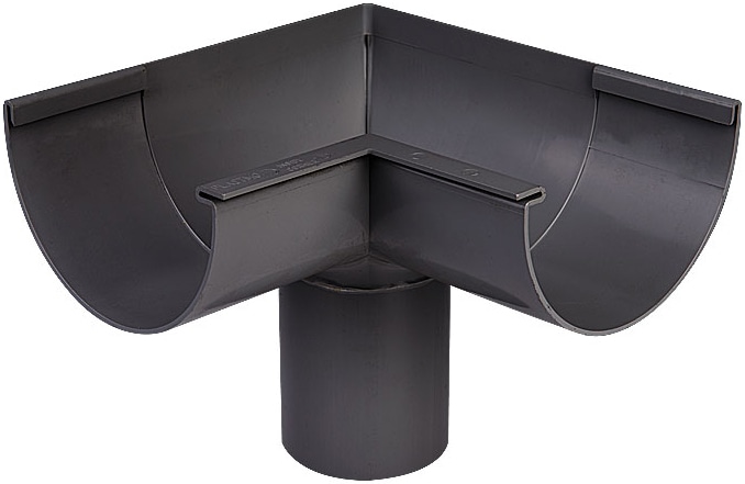 Indvendig 90° gering fra Plastmo i grafit med 75mm tud. Perfekt til tagrender.