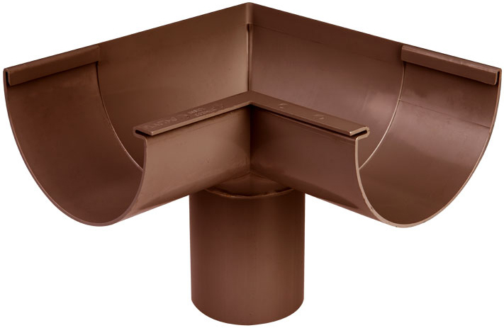 Indvendig gering fra Plastmo i brun. Vinklen er 90 grader og passer til rør med en diameter på 90mm.