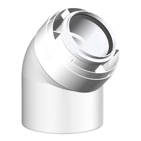Metalbestos Connext vinkelstykke i PPS/ALU med en diameter på 110/160 mm og en vinkel på 45°.