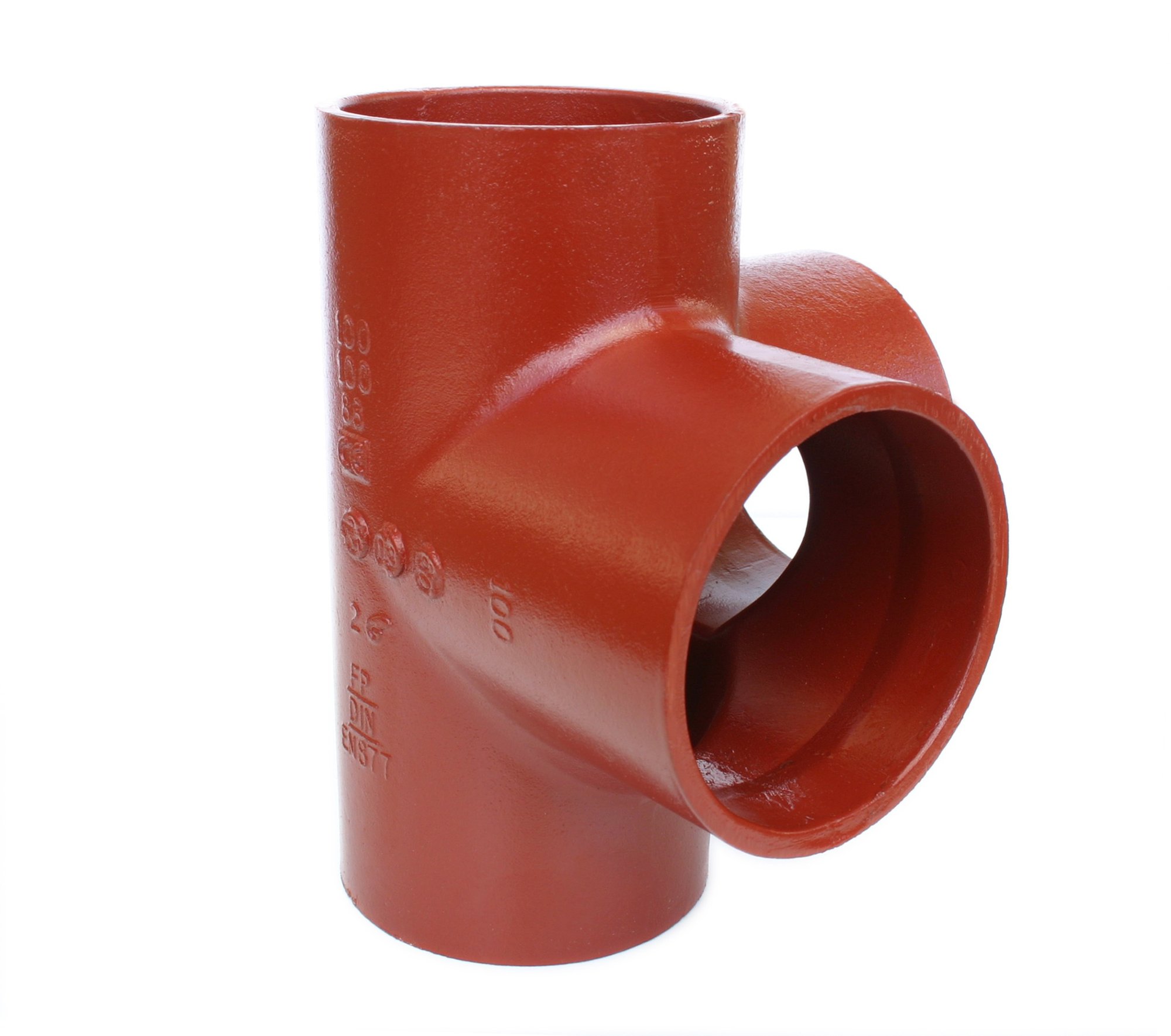 110 mm SML hjørne grenrør, 88° fra Preis & Co. Fremstillet i støbejern.