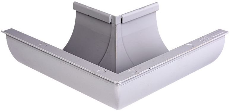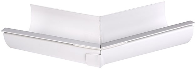 Udvendig gering til tagrender i hvid plast. Vinkel på 45°.