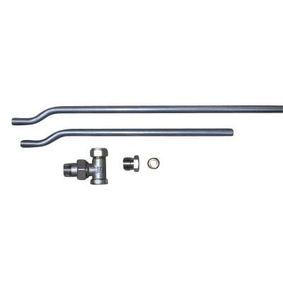 Gabotherm stålrørsæt med en diameter på 12 mm og en længde på 59 mm. Sættet indeholder vinkel og klemringsæt, ideelt til usynlig rørføring i fodpaneler for fjernvarme- og centralvarmeanlæg.