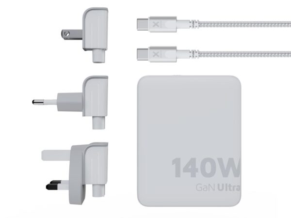 Kraftfuld 140W GaN-Ultra rejseoplader med USB-C PD kabel. Ideel til hurtig opladning af dine enheder på farten.