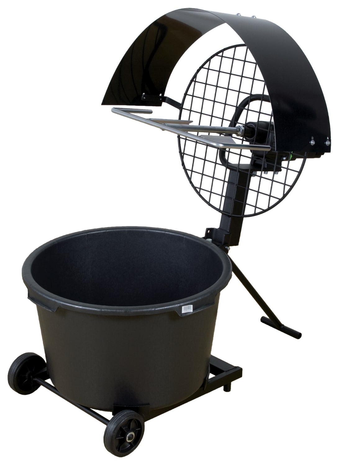 Universal baljeblander med en blandekapacitet på 50 kg. Den kraftige motor blander alle materialer, uanset viskositet. Leveres med 65 liter standard balje, beskyttelsesgitter og baljeholder.