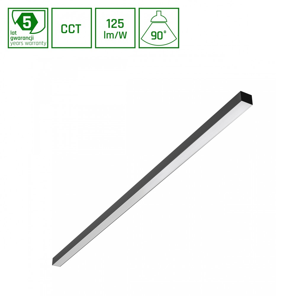 Effektivt Allday Basic loftarmatur på 1503mm med 50W, 5000 lumen og 3CCT. IP20-klassificeret og i sort aluminium.