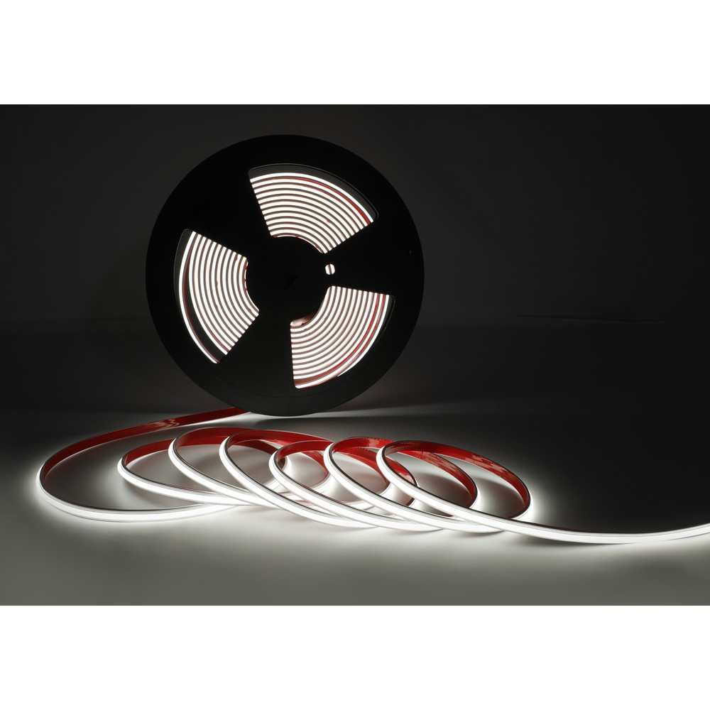 Denne 15W/meter COB-LED strip er designet til at levere effektiv og kraftfuld belysning til en bred vifte af anvendelser. Stripen tilsluttes en 24V forsyning, hvilket sikrer en stabil og pålidelig strømkilde. Med en imponerende lysstyrke på 1400 lumens pr. meter kan denne LED strip oplyse ethvert rum.