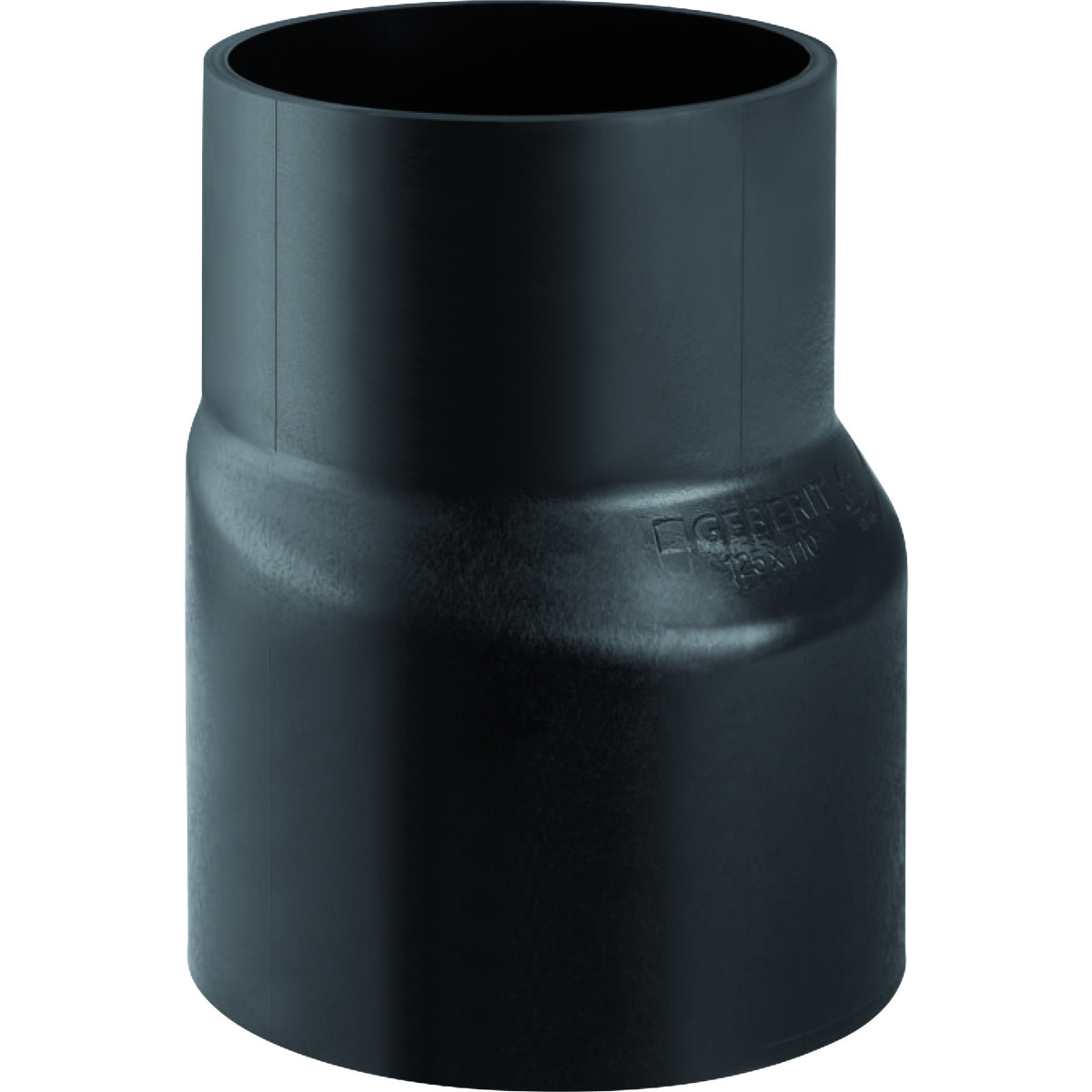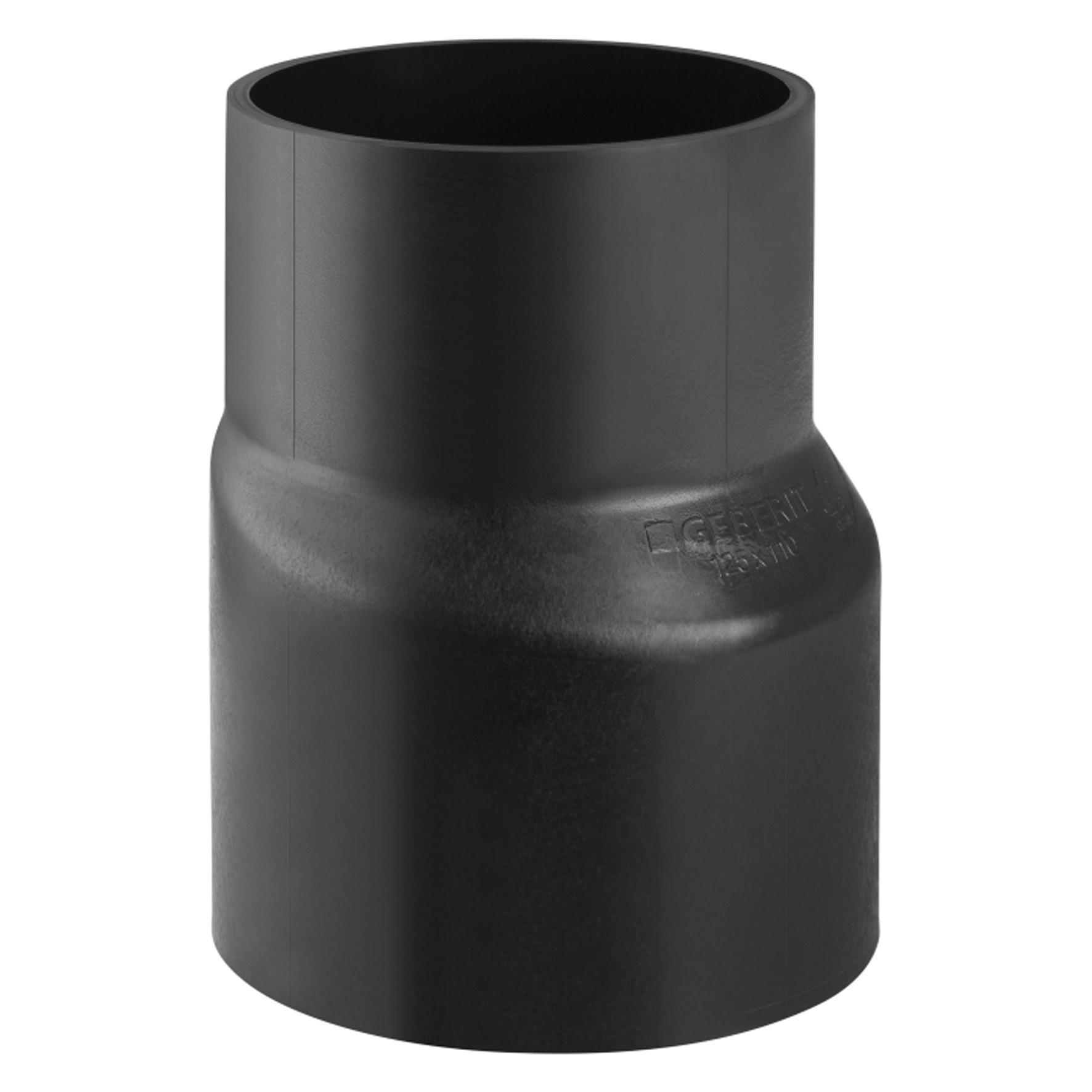 Geberit PEH reduktion excentrisk, lang: d=160 mm, d1=125 mm. Fremstillet i sort PEH.