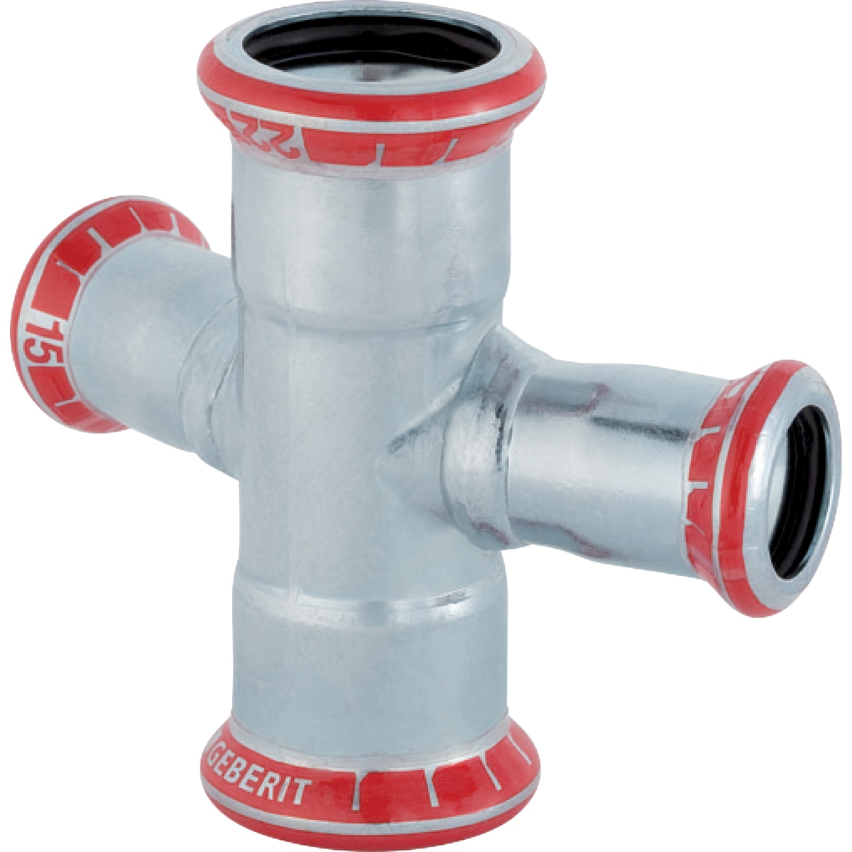 Dette T-kryds er designet til Mapress-systemet og har en vinkel på 30°.