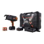 - Leveres med 2 Li-ion slide-in batterier, oplader og 2 ruller tråd i robust plastkuffert