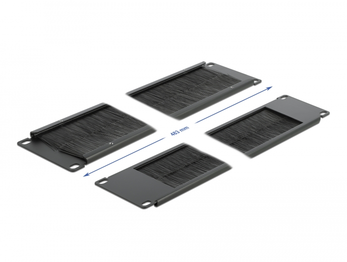 Denne børsteliste fra Delock er velegnet til montering i et 19″ netværksskab. Netværkskablerne føres simpelthen fra front til bag, så synet af kablerne inde i netværksskabet blokeres, og netværksskabet efterlader et pænt samlet indtryk. De medfølgende nylonbørster forhindrer indtrængen af støv og snavs.