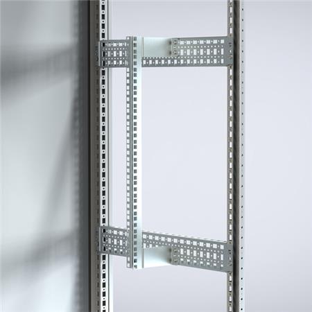 Partiel højde 19" vertikale profiler for at opfylde krav til 482.6 mm montering på alle sider. Justerbar i dybden i trin på 25 mm ved brug af CLPK klik-i profiler.