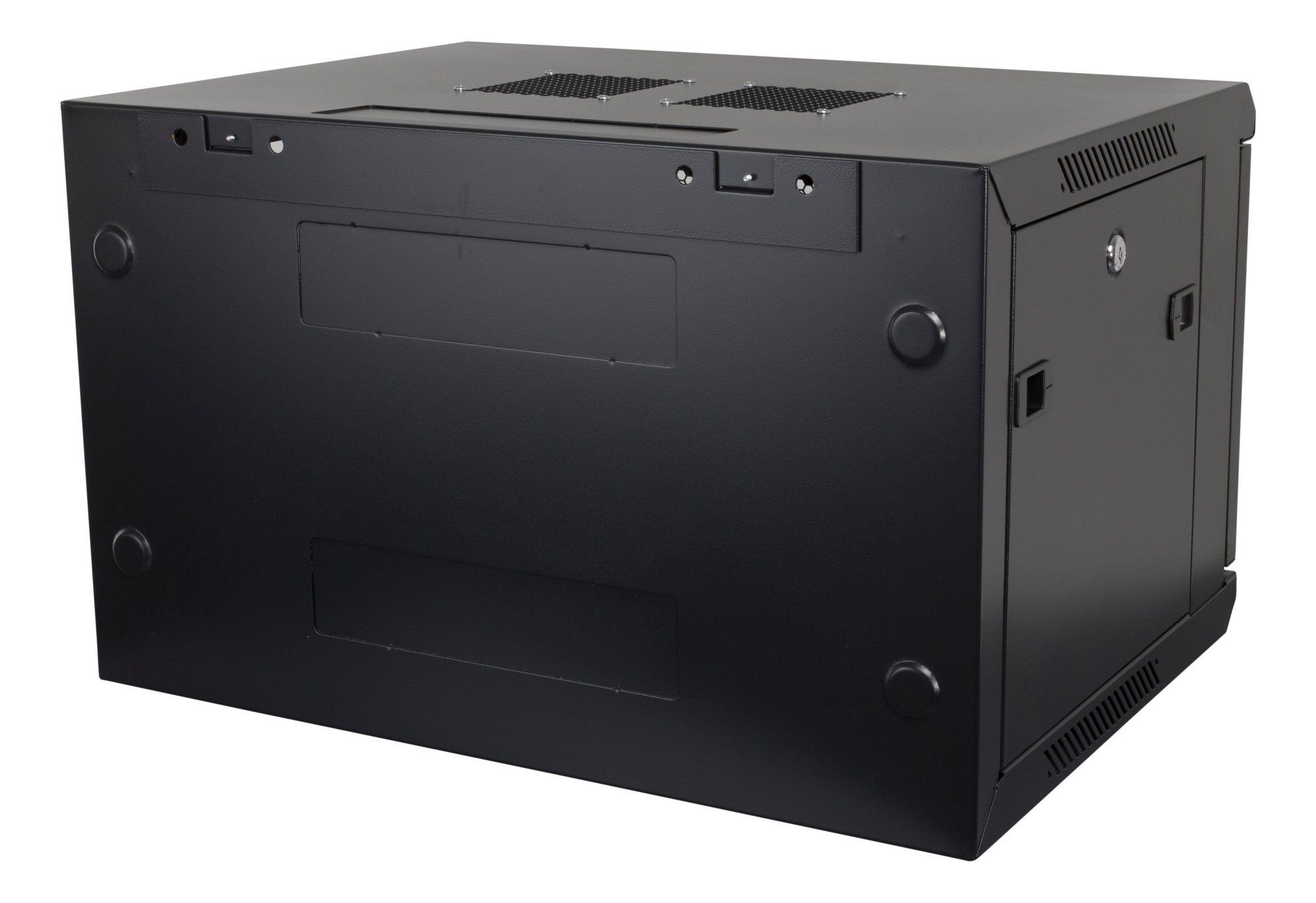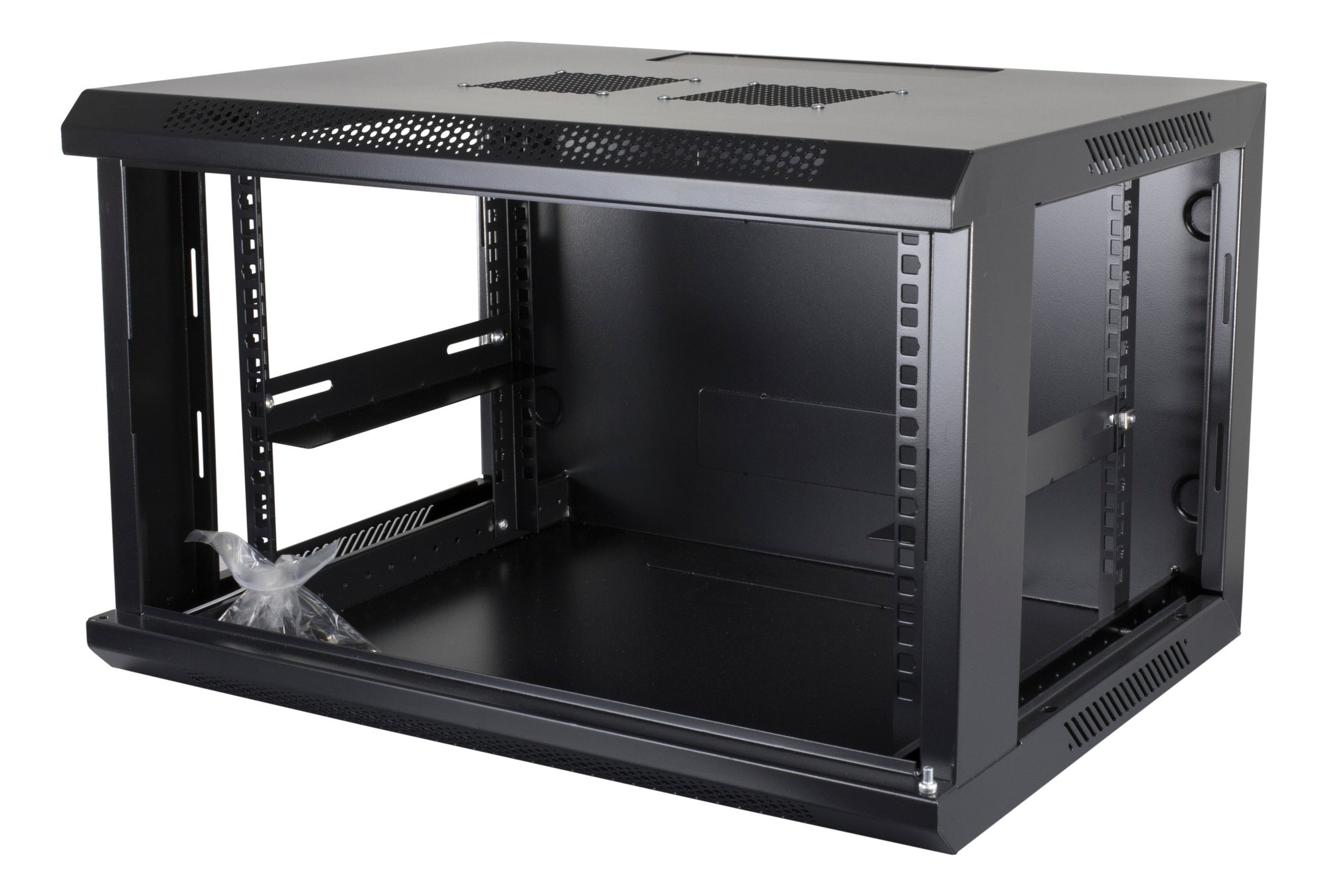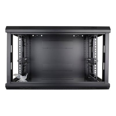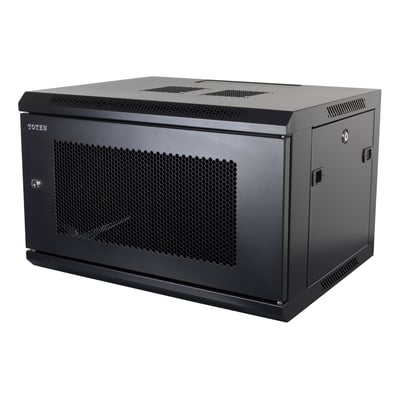 Vægmonterbart serverskab med plads til 6U og en vægtkapacitet på 60 kg. Skabet er udstyret med aftagelige sidepaneler og en perforeret pladedør. Modulær...