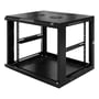 Dette rummelige 19" vægmonterede skab giver dig mulighed for at svinge det ud fra væggen, så du let kan tilgå dit udstyr på bagsiden. Hængslet tilføjer 20 mm til bredden i venstre side, set forfra.
