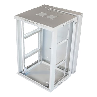 Dette rummelige 19" vægskab er designet til at give nem adgang til dit udstyr. Skabet kan svinges ud fra væggen, hvilket gør det let at tilgå udstyret på bagsiden. Hængslet tilføjer kun 20 mm til bredden på venstre side, når man ser skabet forfra.