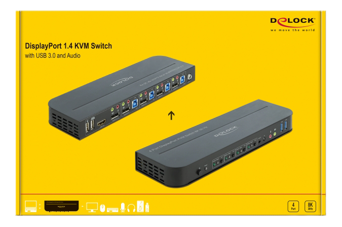 DisplayPort 1.4 KVM switch, 8K, 30 Hz, med USB 3.0 og lyd - Delock