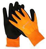 Tynd nylonstrik handske med Hi-Viz orange ribkrave og Foam Nitril håndfladebelægning. Touch-skærm følsom i tre fingre.