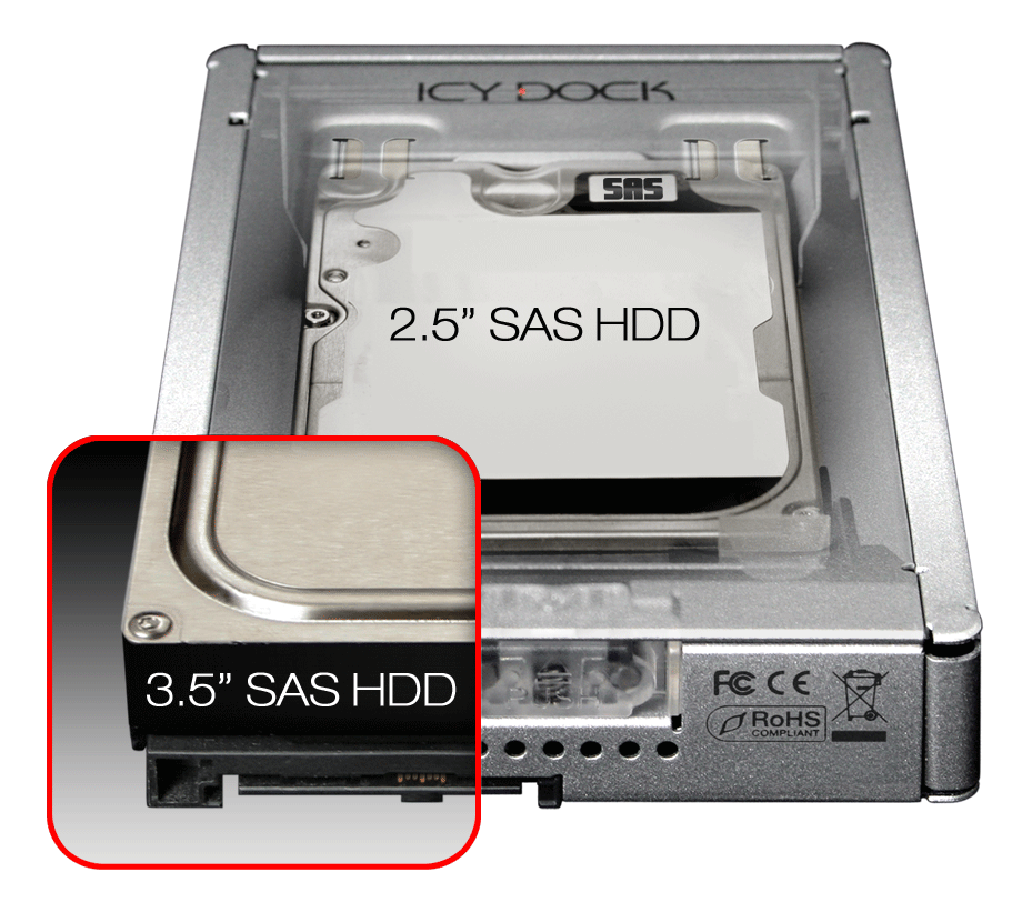 - Konverterer 2.5" SAS SFF-8482 enheder til 3.5" formfaktor