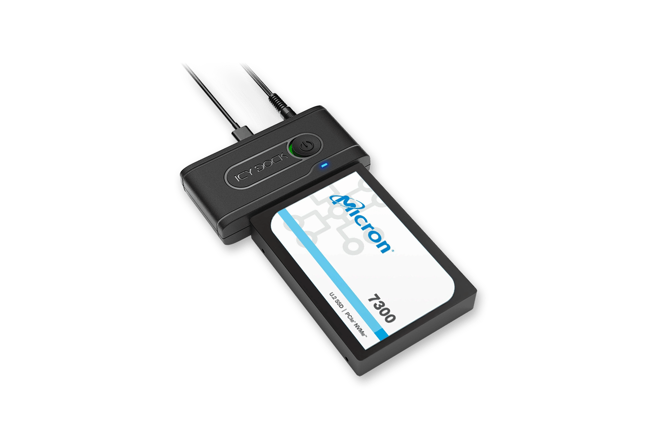 Adapter til tilslutning af 2.5" U.2 NVMe SSD til USB 3.2 Gen2 port.