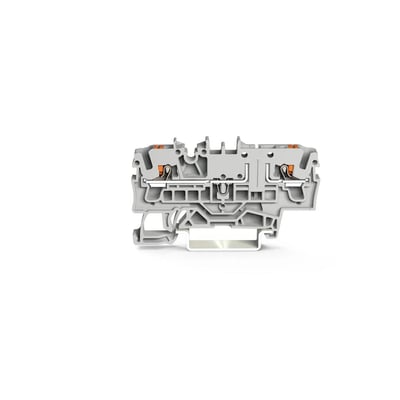 2-leder basisklemme med betjeningsknap til DIN-skinne 35 x 15 og 35 x 7,5. 2,5 mm² Push-in CAGE CLAMP, 2,50 mm², grå.