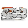 2-leder-gennemgangsklemme med pal og betjeningsknap, 16 mm2, grå. Med testport og side- og midteropmærkning. Til DIN-skinne 35 x 15 og 35 x 7,5.