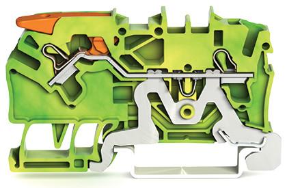 2-leder-jordklemme, 2,5 mm2, med testport og side- og midteropmærkning. Til DIN-skinne 35 x 15 og 35 x 7,5. Med Push-in CAGE CLAMP®.