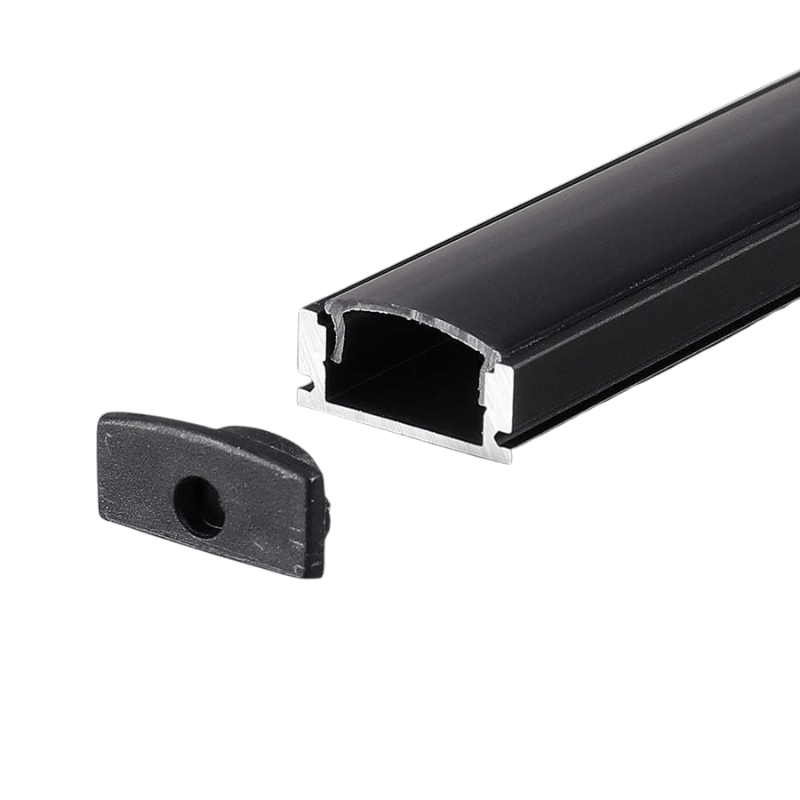 Alsidig aluprofil på 2 meter, fremstillet i aluminium. Inkluderer sort cover og endestykker. IP20-klassificeret.
