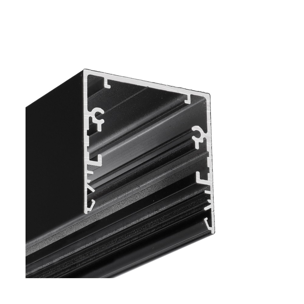 Denne 2 meter lange, sortlakerede aluprofil fra Topmet er designet med påbygning og LED skinne (PHIL53 C10).