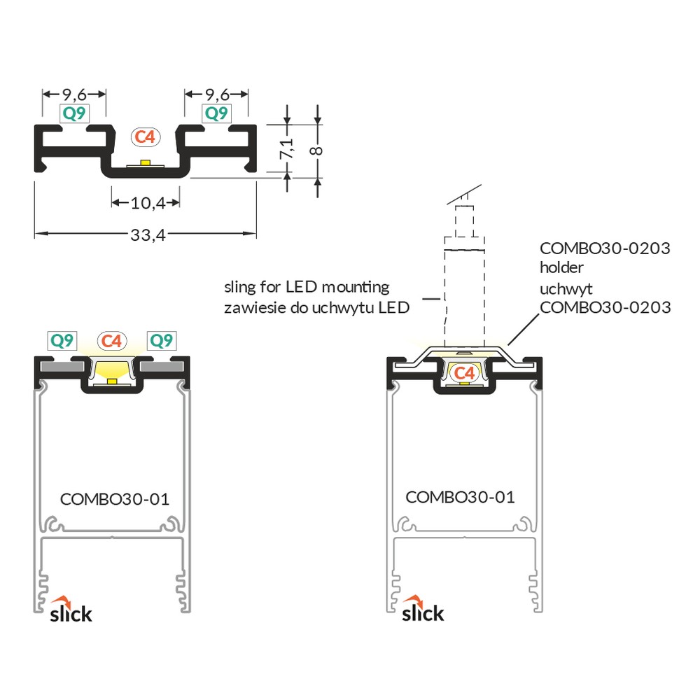 Denne 2 meter lange tilbehørsprofil fra Combo30-03 serien er designet med C4/Q9 og har en flot, anodiseret finish. Den er fremstillet af aluminium og har en hulstørrelse på 10 mm.