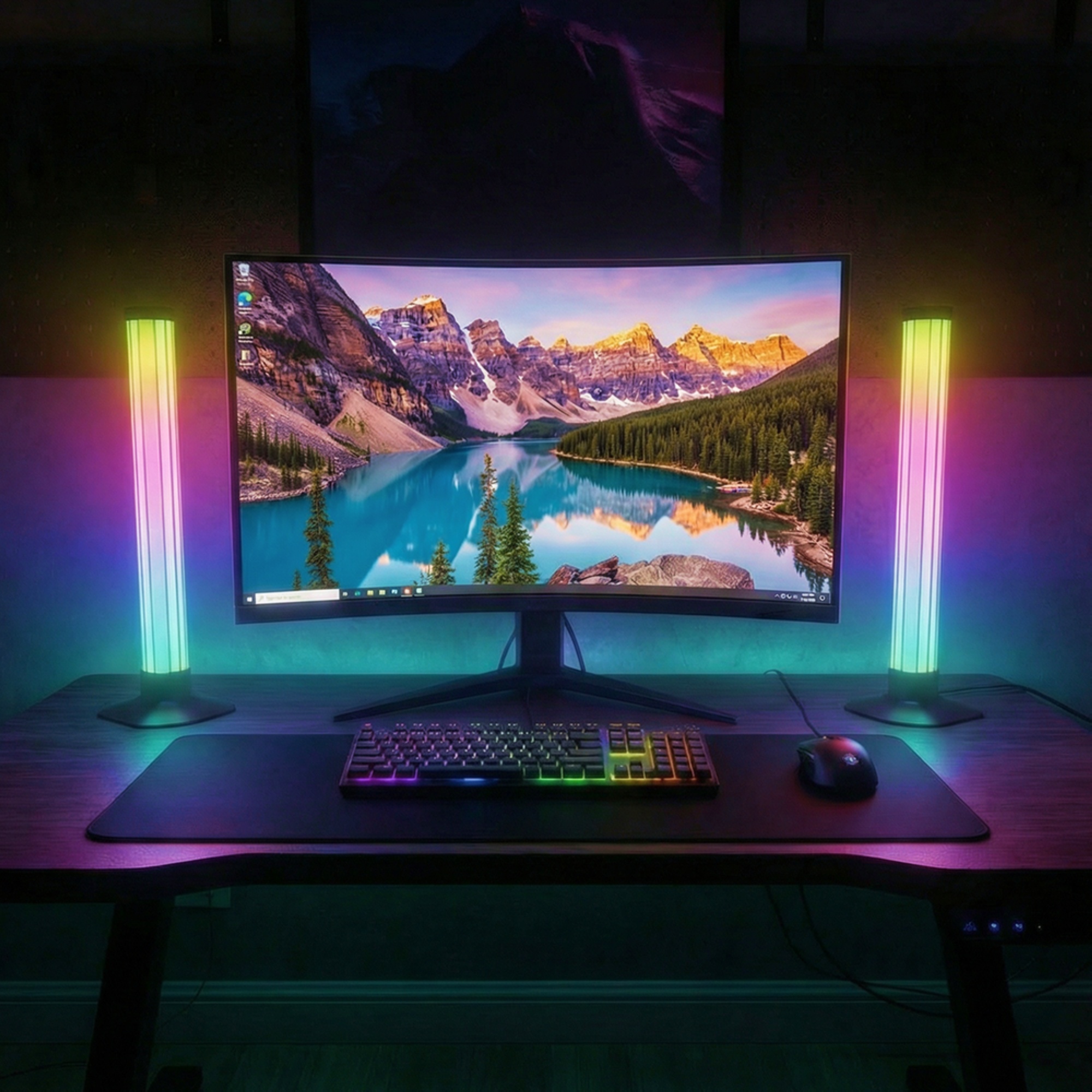 Oplev stemningsfuld belysning med disse 2 stk. 43cm RGBIC ambient light bars. Styr via Bluetooth.