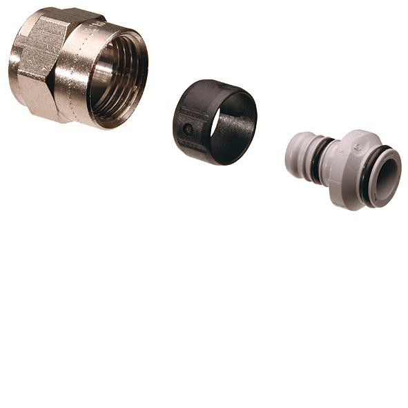Uponor Uni-C koblingssæt MLC til montering af Uponor MLC-rør på Uponor Uni-C 1" fordelerrør. Må kun bruges med Uponor rør og fordelerrør. Fremstillet i messing.