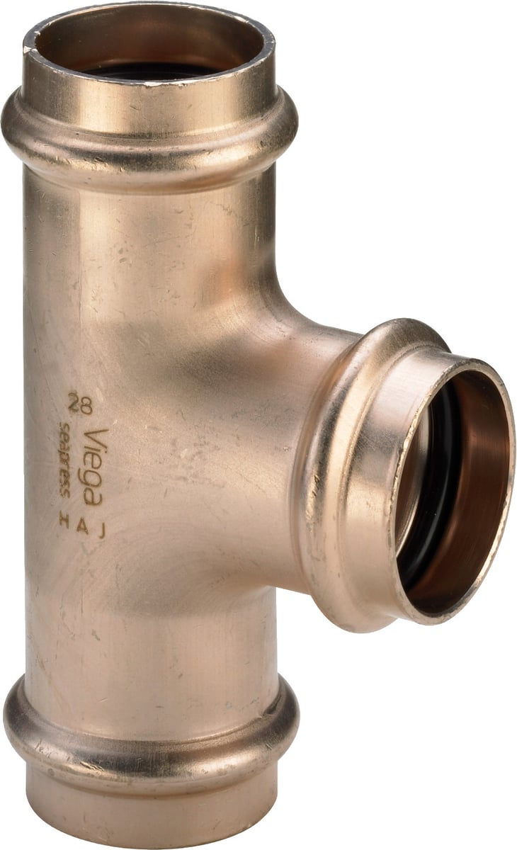 Pres T-stykke af legeringen CuNi10Fe1,6Mn, der opfylder kravene til anvendelser med havvand. Fittings til hurtig og ren installation af hoved-, fordelings- og tilslutningsledninger.