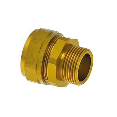 Kobling PN10 til varmt brugsvand og cirkulation. Bruges til samling af medierør og er udført i afzinkningsbestandig messing, spændskive og møtrik i syrefast stål.