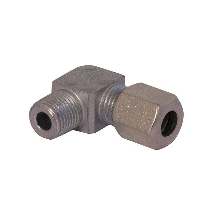 WE Vinkeladapter – R udvendig med konisk tætning, metrisk gevind, omløber og skærering, Cr6-fri.