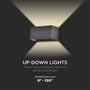 Denne 24W LED udendørs væglampe kombinerer funktionalitet med et stilfuldt design. Med sin IP65-klassificering er lampen beskyttet mod støv og vandstråler, hvilket gør den ideel til brug i alle udendørs miljøer. Lampen afgiver et varmt hvidt lys på 3000K med en imponerende lysstyrke på 2720 lumen, og den op/ned lysfunktion skaber en behagelig og stemningsfuld belysning.