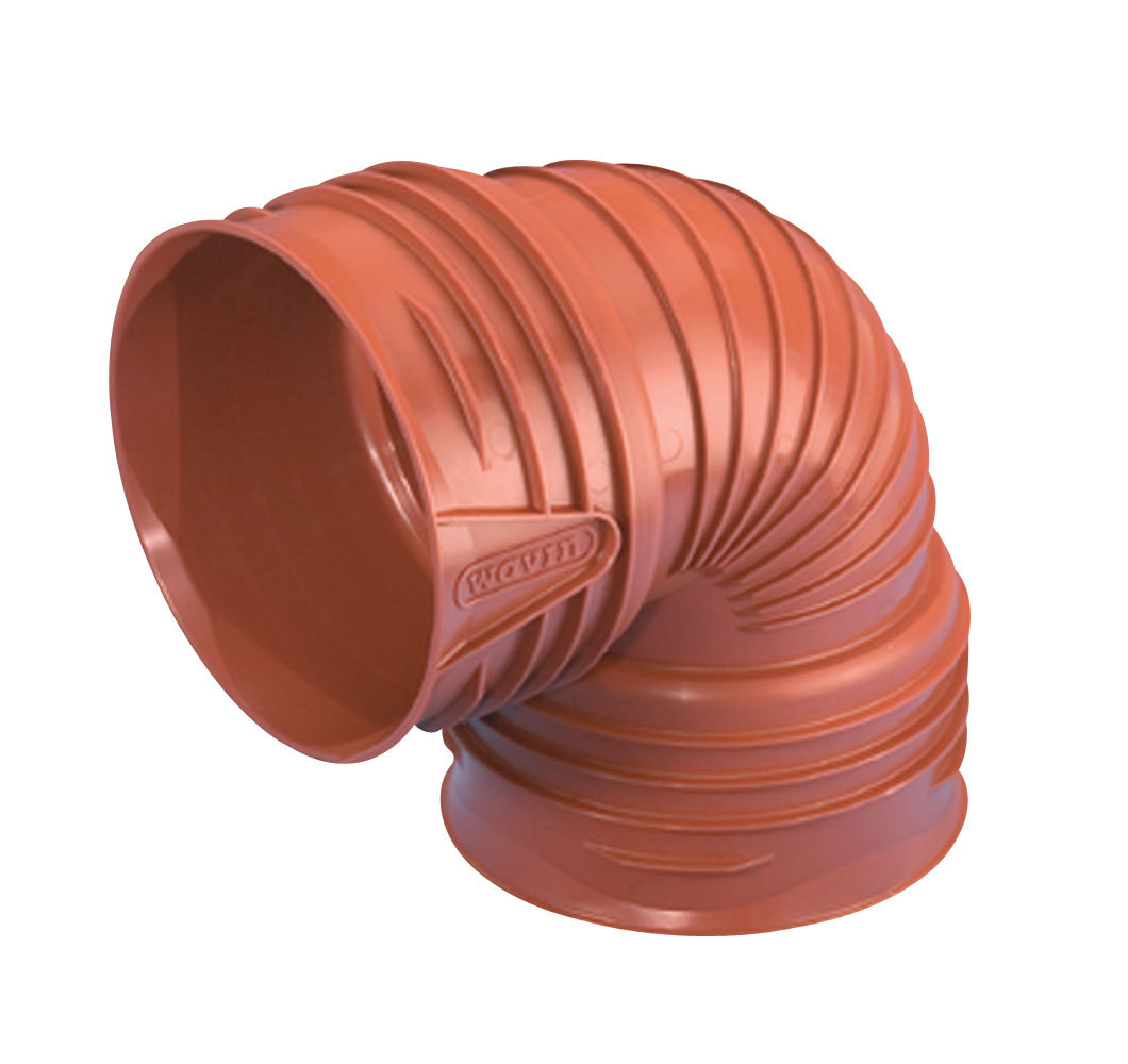 90° PP-bøjning fra Wavin Rib/Rib2 serien, ideel til afløbssystemer. Diameter: 250 mm. Fremstillet i PP.